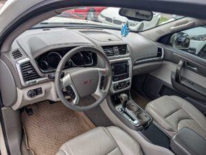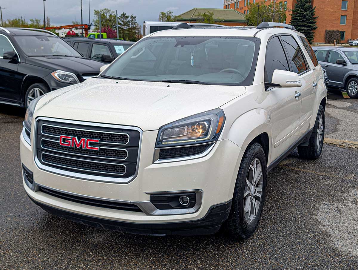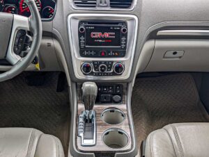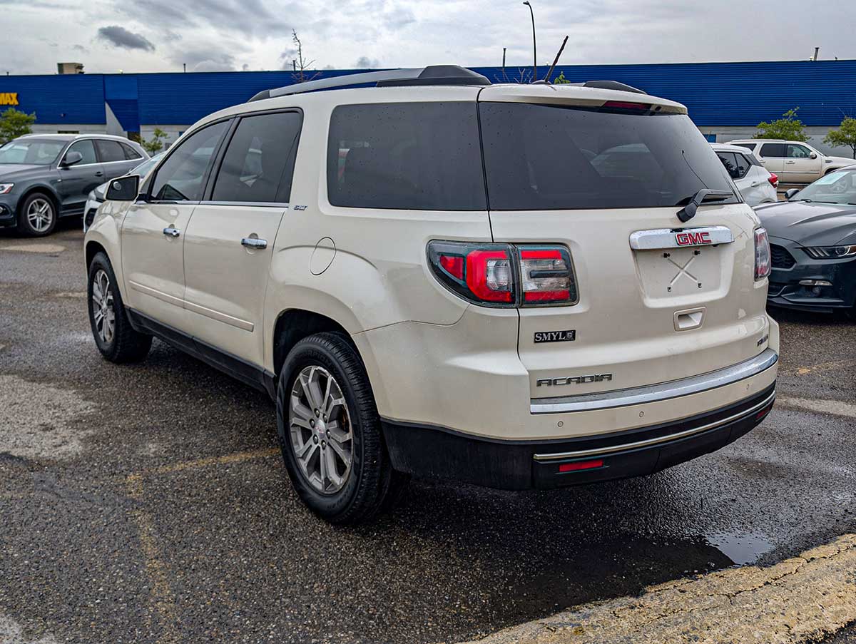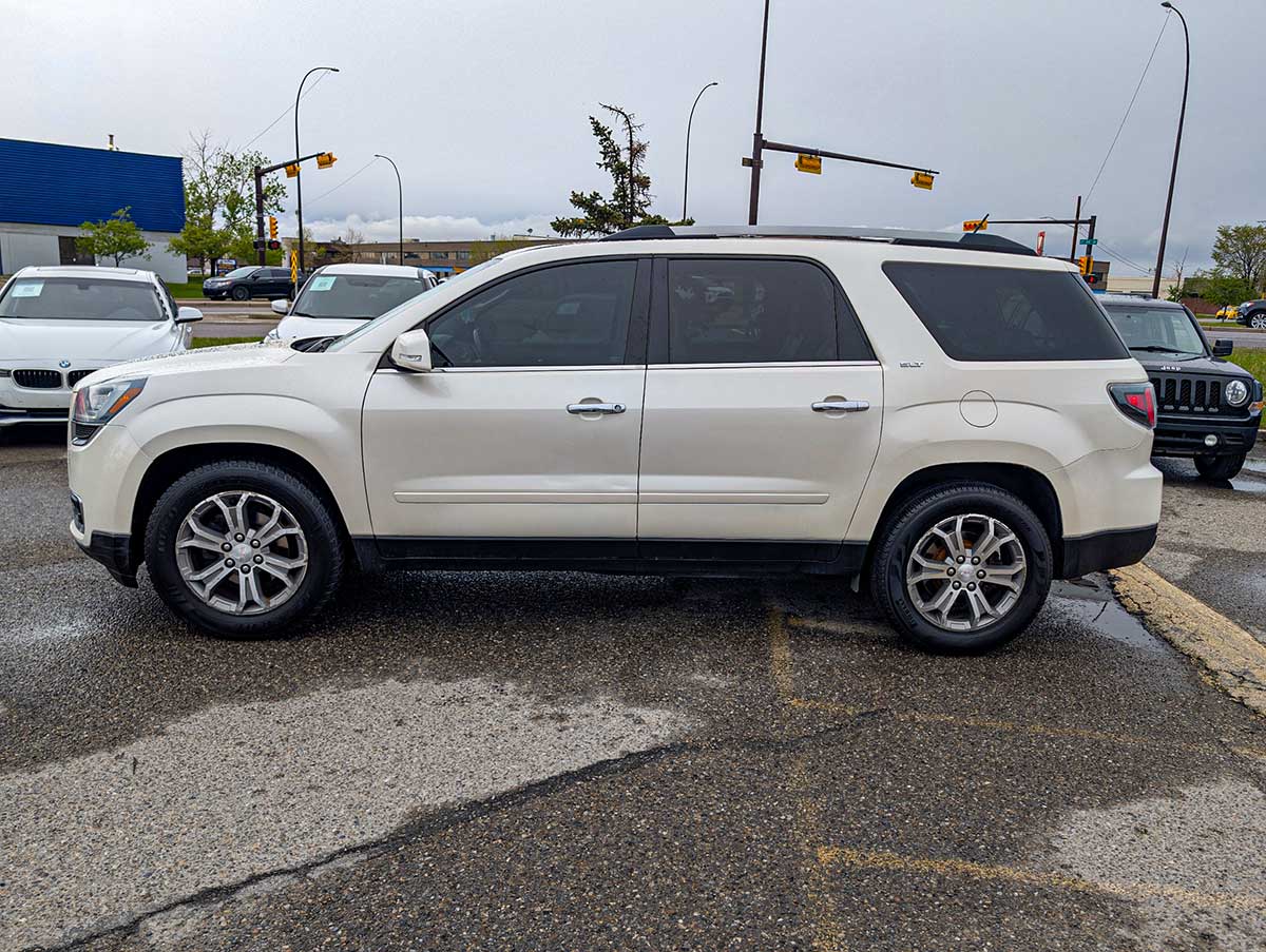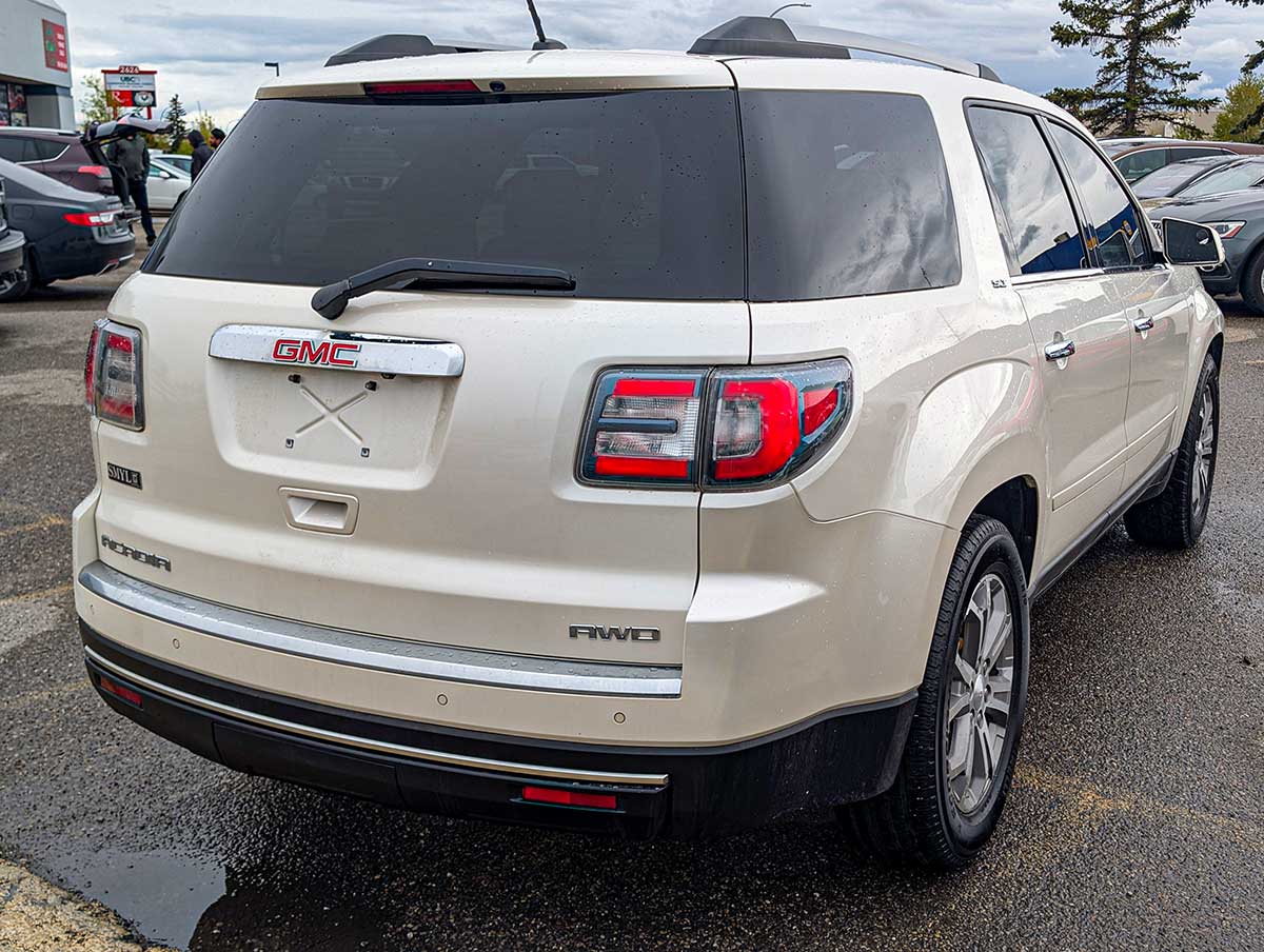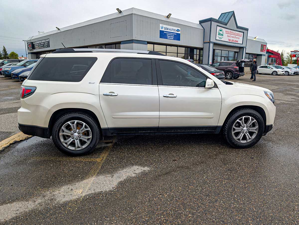 The 2015 GMC Acadia SLT is a versatile midsize SUV that offers comfortable seating for up to seven passengers and a strong blend of performance, utility, and family‑friendly features. Powered by a 3.6L V6 engine producing approximately 288 horsepower, it delivers smooth acceleration and capable everyday driving. The SLT trim adds upgraded comfort, convenience, and technology features that make it a great choice for daily use, road trips, and hauling gear.